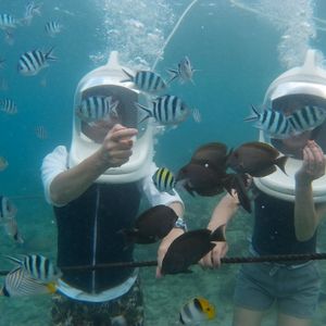 アクアウォクはだいぶん離れた場所にあり 火力発電所の奥で人気のないところでビックリしました。インストラクターは親切で魚もたくさん寄ってきて満足しました。