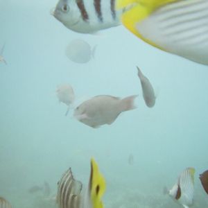 イルカウォッチングのあとは、シュノーケリングをしました。水面下すぐにもう既に魚が沢山泳いでいて、びっくりしました。キャプテンのお兄さんがちぎったパンを投げてくれたので、魚が沢山やってきた面白かったです。