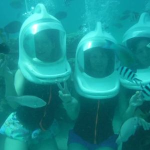 アクアウオークに参加しました。スタッフさんの心配りが良いですし、予想よりも沢山の魚に囲まれて怖いくらいでした。また必ず参加したいです。
