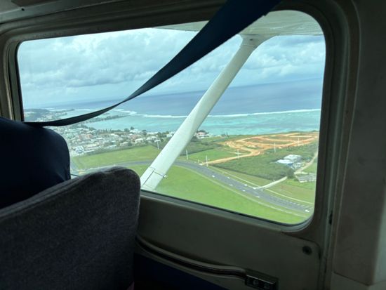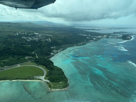 空から見るグアムの海は美しくて、優しいパイロットさんは操縦や無線連絡もありながら、見える景色のガイドだけでなく、今管制塔と何をやりとりしたかとか、何時の方向にエアラインが来ているのでそちらが降りるのを待って降ります等、逐一教えてくれたのがとても興味深く、子どもにもわかりやすく、ありがたかったです。