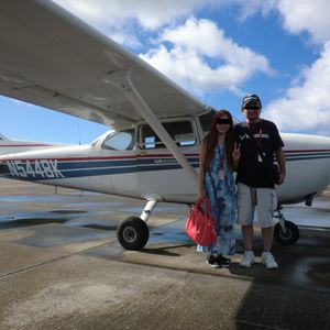 生まれて初めてのセスナでした。最初、実物のサイズを見てビックリしましたが、離陸や着陸、運転中もそんなに音は気にならないし、何よりパイロットの方が日本人の方で虹を作って見せてくれたり、しっかり見れるようにぐるっと回ってくれたり、とても親切でした☆☆今度は是非操縦してみたいです!!