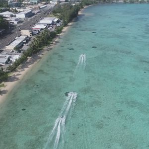 穏やかな湾内で運転練習の後、湾外に出るための波超えを練習してから一気にアクティビティがスタートします。湾内でインストラクターの後について練習走行しているときにドローンがきますので、ドローンに向かって手を振ってスタート!