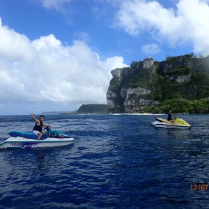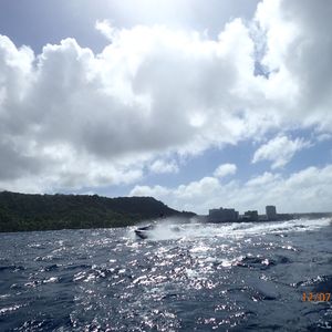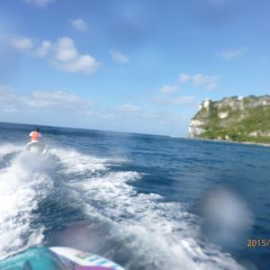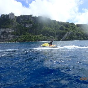 ハガニア湾からタモン湾を横断して恋人岬の下までインストラクターの先導で航行します。インストラクターはそこそこ先に行ってしまうので割と自由に航行することが出来ます。波でジェットは簡単に跳ね、エキサイティングな体験が出来ます。