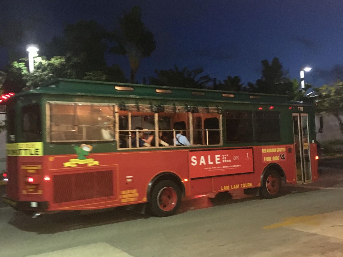 滞在中の移動に利用しました。アウトレットやマイクロネシアモールなど、少し遠いところもこのバスがあれば行き放題です。主要ホテルに停車するのでショッピングのときには欠かせない乗り物だと思います。運転主さんも感じのよい方々が多くて陽気でした。