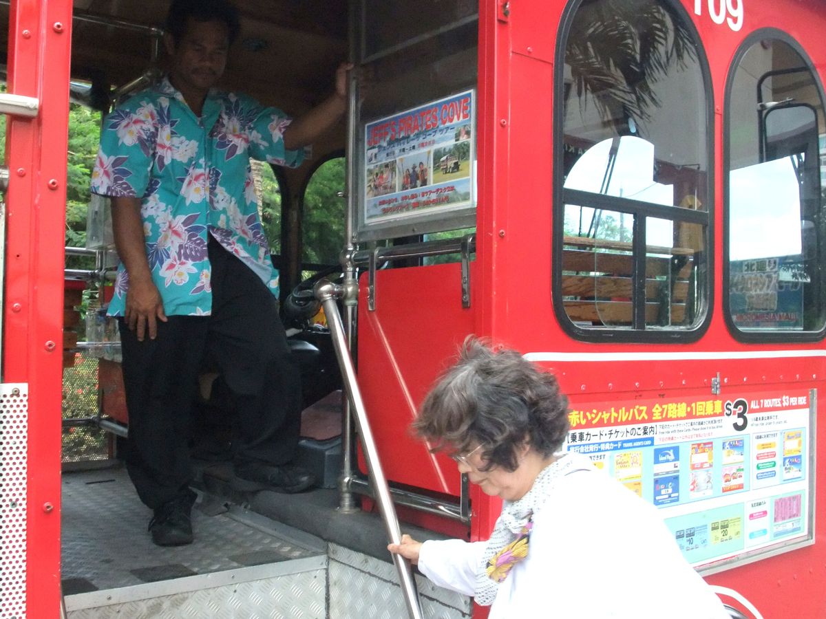 ドライバーはフィリピーノが多い気がしますが、一様にフレンドリーでサービスも良いです(但し、横柄だったり五月蠅いお客にはドライな対応。これは当然ですね)。他にお客がいなくて貸切状態だとドライバーさんとお喋りで盛り上がる事も・・(添付写真がその時のものです)。 あと、日本の車両と違ってエンジン音、振動、ガソリンの匂いなどが結構気になる方もいるかもしれません。私は幼少期に親の駐在でグアムに住んでいたので、そういうのは気になりません(笑)
