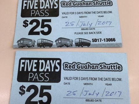 3日目だけ使いました。2日間乗り放題だと1人15USDなので、1日だけでも4回乗れば元は取れる。3日目は結果4回乗ったので損にはなりませんでした。チケットの交換に行った場所はTギャラリア。ツアーデスクの場所を探すのにちょっと迷いまのしたが、近くのスタッフに場所を聞きながらでたどりつけました。シャトルバスはグアム島内の移動には欠かせないので買って置く方がよいと思います。当日主要なバス停でもチケット売ってますが、全種類取り扱ってない場合があったり、滞在するホテルの場所によっては、その主要なバス停に行くためにバスに乗る必要が出てくるので事前購入がおすすめだと思います。
