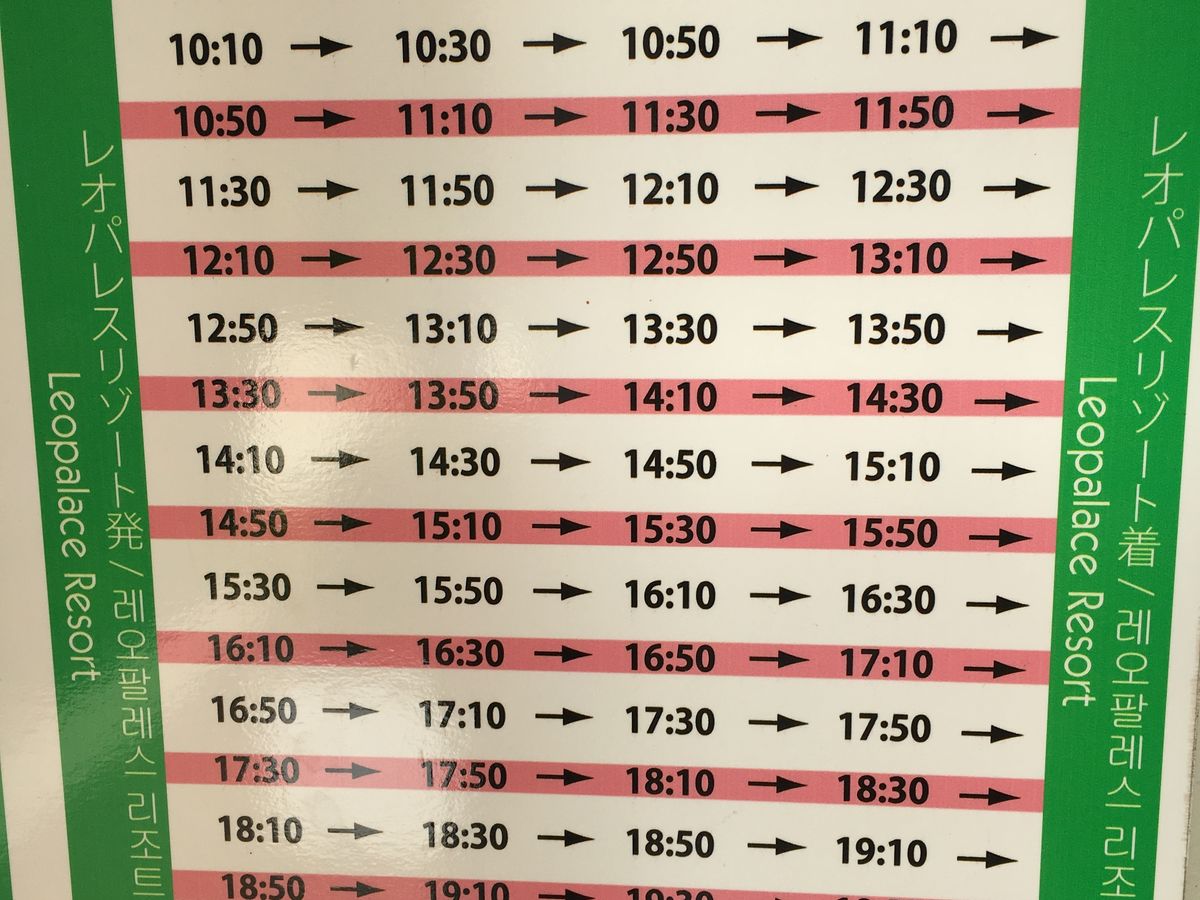 最終のバスが21時台なので、遠めのホテル滞在で中心部での遅めのディナーや夜のショッピングを楽しみたい時には少し早く感じます。