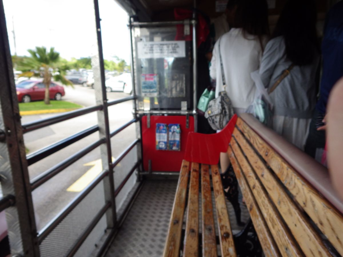 バスルートはホテル街から①K-マート、②マイクロネシアモール、③プレミアムアウトレットへ往復でき、多くは10分間隔だったのでこの点はとても便利だと思いました。ただし、バスの中ではWi-Fi使用はあきらめたほうがよいですし、バスが5種類ほどあり、大型バスタイプや天井はあるもののサイドがすべてオープンのタイプは全く使えません。数少ない前方エアコン、後方オープンタイプのバスの一部ではWi-Fiが使えました。冷房はそのタイプのみが概ね効いていて、その他は期待できません。大型バスタイプはエアコンらしきものは回っていますが、音だけって感じでした(フィルター掃除すれば効くのかも?)。なお、他社運行のバスは殆どの主なホテルには乗り入れますが、赤いシャトルバスは高級ホテルいくつかに乗り入れるだけで、その他は通りまででした。あと、椅子は概ね木製なので長時間乗るとお尻が少々痛かったです。