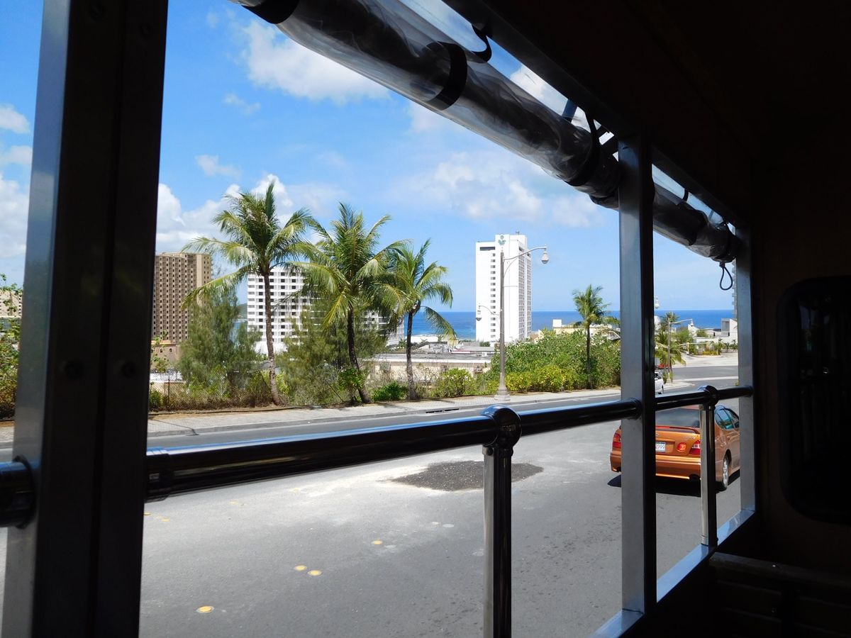 のんびりバスでグアムの風感じながら乗りました。