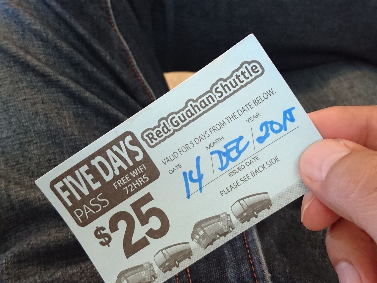 グアムは、シャトルバスがあると便利なので、乗り放題チケットは買った方がよいと思うのですが、初日と最終日はツアーの送迎があり、バスにほとんど乗らなかったので、2日のチケットにすれば良かったかなーと思いました。