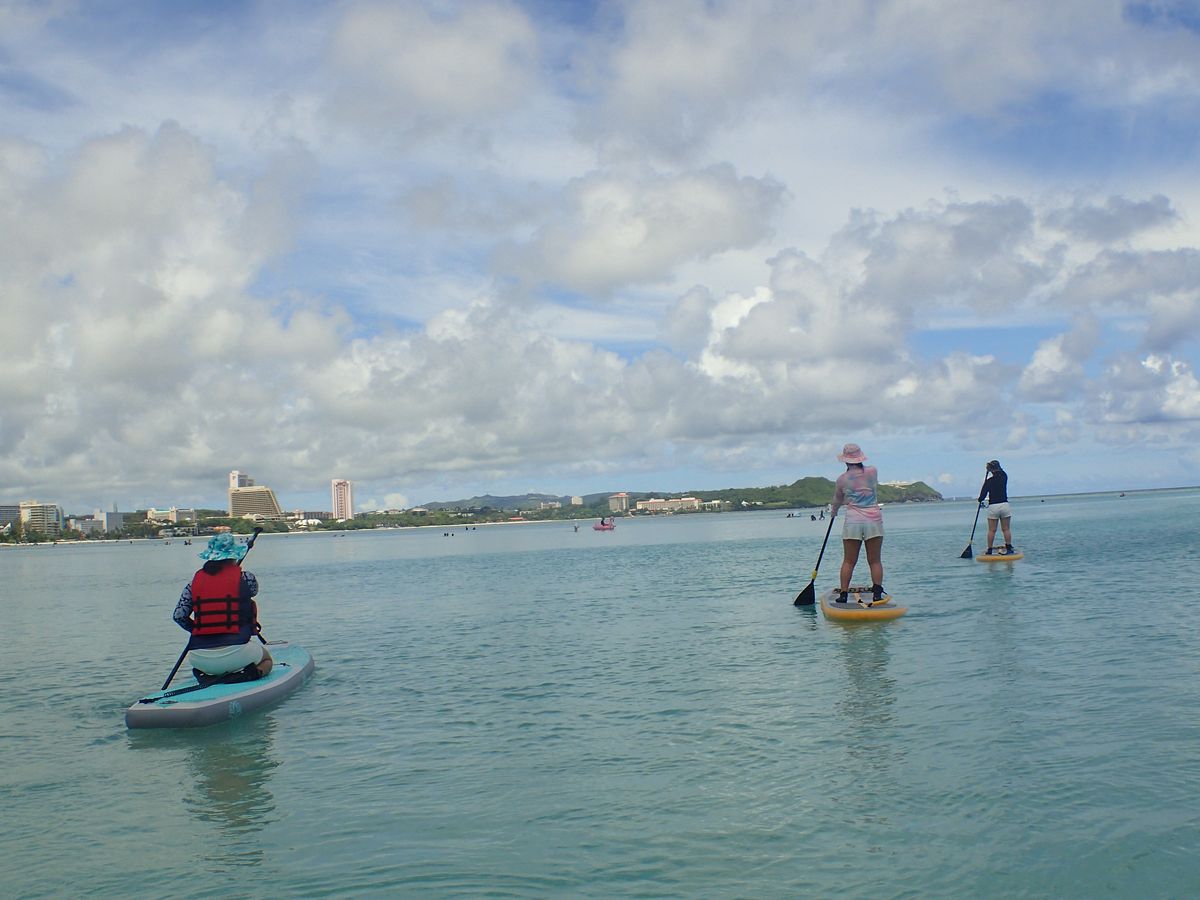 SUPではゆっくりまったりとクルージングを楽しめたのはもちろん、みんなでサメの住処に探検に出かけたり、グアム伝統のカヤックの練習風景を見学しながら、虹やサンセットを満喫したりととても有意義な時間を過ごすことができました。