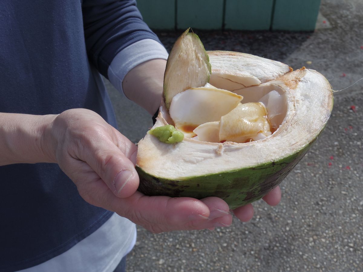 移動して、岩でできた海の天然プールに行き、ここでココナッツとマンゴーの漬物まで買っていただきました。