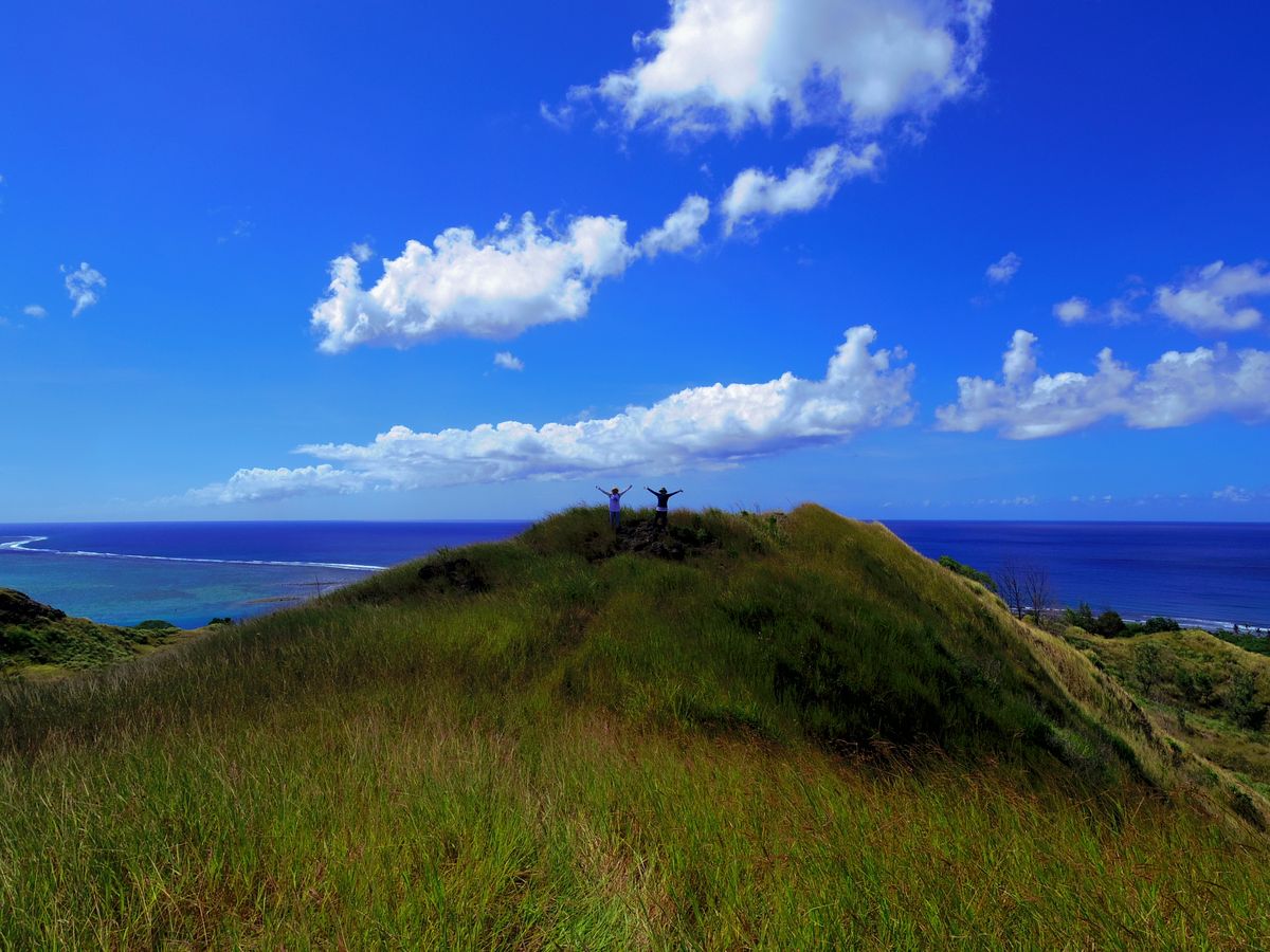 私(70代)と若い男性の二人の参加でした。お天気も良く、少人数にてスムーズな行動でした。ドライバーのブンちゃん、ガイドのキミコさん、とても優しく、思いやりあって、このツアーに参加しなかった仲間(グアムには4人で参加)に自慢しました。凍った水のペットボトルと普通の水の二本用意してくれたり、熱中症予防に、冷たいスポンジのタオルを首に巻き、おまけに温まった頃に、交換してくれるなど至れり尽くせりでした。天国の丘では、準備してくれた折りたたみ椅子に座り、好きな具材のおにぎりを頬張り、青空の下、ココス島を眺めながらのひと時は、最高に贅沢な時間でした。昨日、時間の関係で行けなかった恋人岬にも案内してくれました。柔軟な対応に感謝です。機会があれば、次回は登山をお願いしたいと思います。少人数で、天候に恵まれたことも幸いでしたが、何よりも、ブンちゃんとキミコさんのお陰です。有難うございました。ただ、ハイキングに物足りない感はありましたが・・・