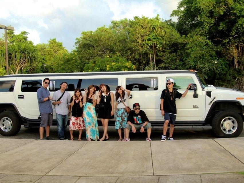 去年初めてハマーリムジンで島内観光をしたのですが、とても良かったので、今年もお願いしました。MIKIタクシーの対応も非常に良く、去年のドライバーを調べてくれて、同じドライバーにお願いすることが出来たので、去年のルートを覚えていてくれたのと、新しい場所に連れて行ってくれたり、とても充実した島内観光でした。6人~8人なら金額的にも社内の広さも満足出来ると思います。流石にハマーリムジンは目立ちますので、観光スポットで沢山の観光客に遭遇すると、見られすぎて少し恥ずかしいですが、間違いなく優越感も有り、旅の思い出の1ページに良いと思います。
