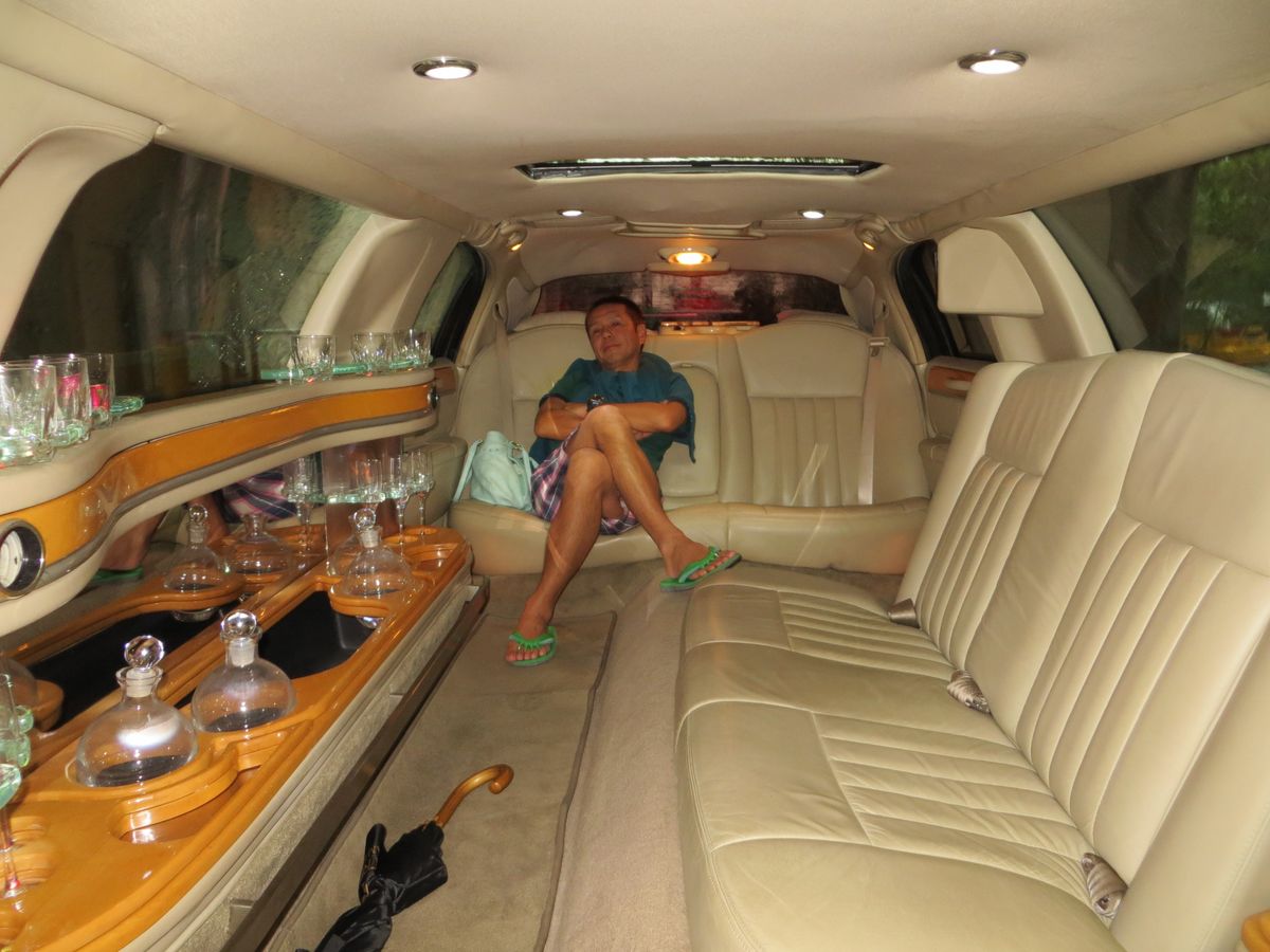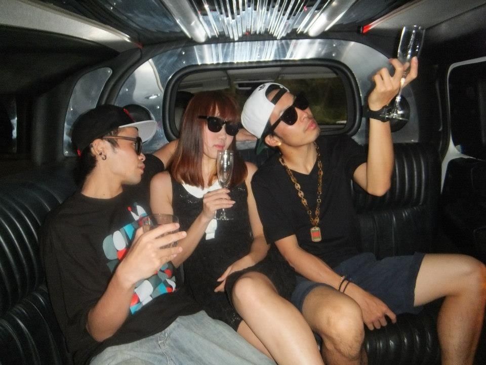 前日のゴルフで疲れていましたが11人乗りのハマーリムジンは8人だとゆったりと寛げて最高の疲れ休めになりました。