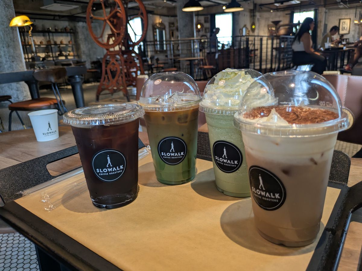 スローウォークコーヒーは雰囲気がよく、とても素敵でした。2階もあり、とても広いお店でした。自身では行きづらい場所にあるので、ツアーで立ち寄れて良かったです。