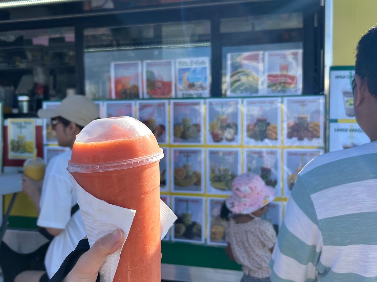 朝市でスムージーを注文しましたが、混んでいて出来上がるまでに15分ほどかかったので余裕を持って注文されることをオススメします。
