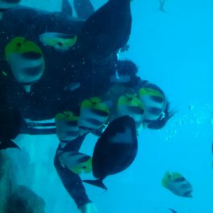 グアムに来て子供達とシュノーケリングのツアーに参加する前にこのツアーに参加しました。潜るとこんなに魚がいるんだよ言うことで、つかみはOKでした。沢山の魚が見れてよかった事と、何よりも水族館に行くまでの橋を渡っているときの景色は最高です。橋を渡っている時も魚が見えます。ランチ付きにしましたが、これも美味しく選んでよかったです。途中ウクレレの演奏もありました。