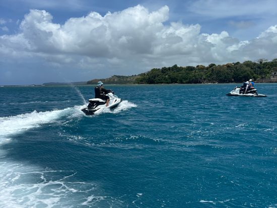 ビキニアイランド→波が荒れてるのでロープに繋がりながらのシュノーケリング→ジェットスキー→岸に戻りバナナボートなど→お昼ごはんの順番で体験しました。