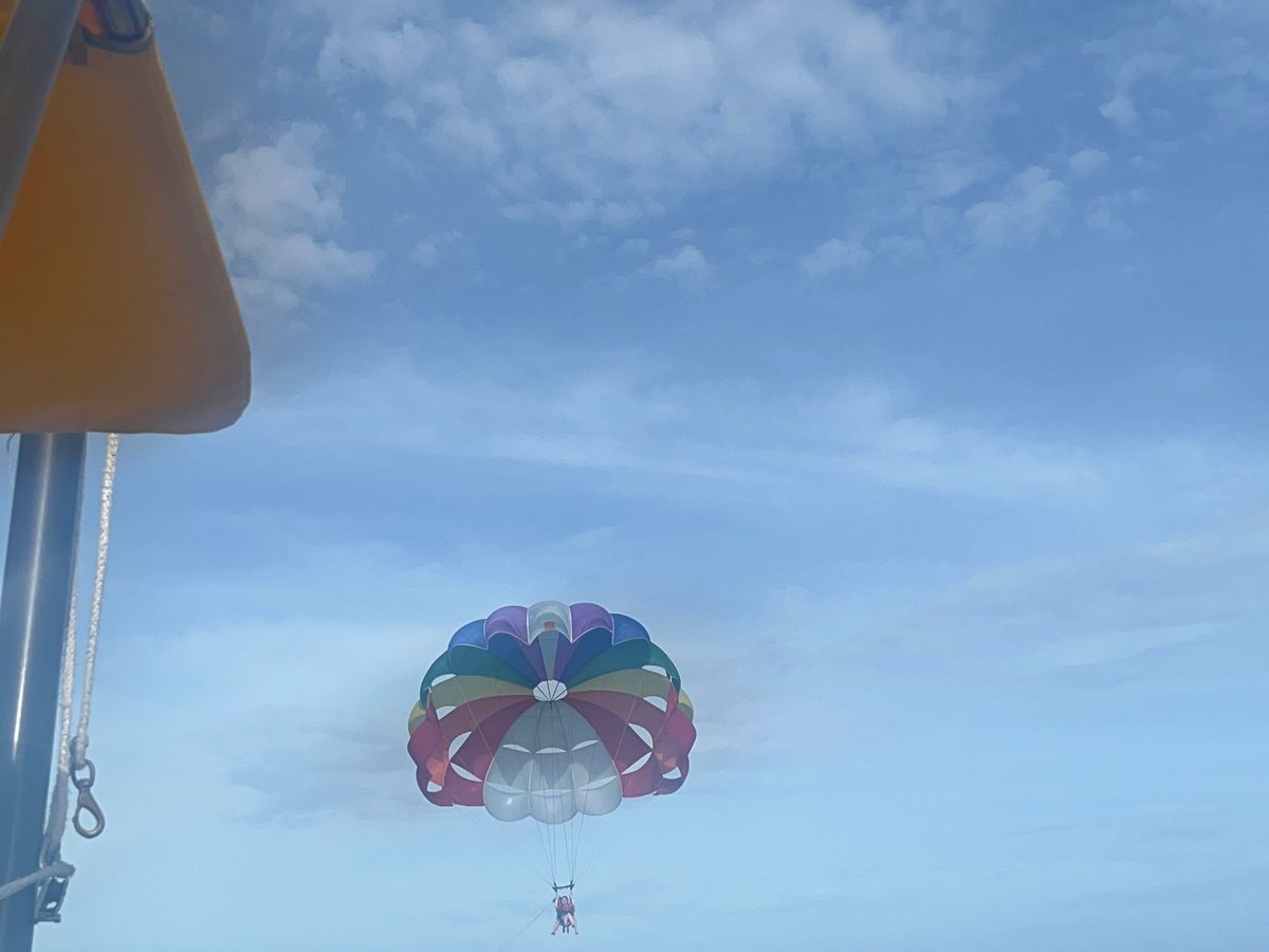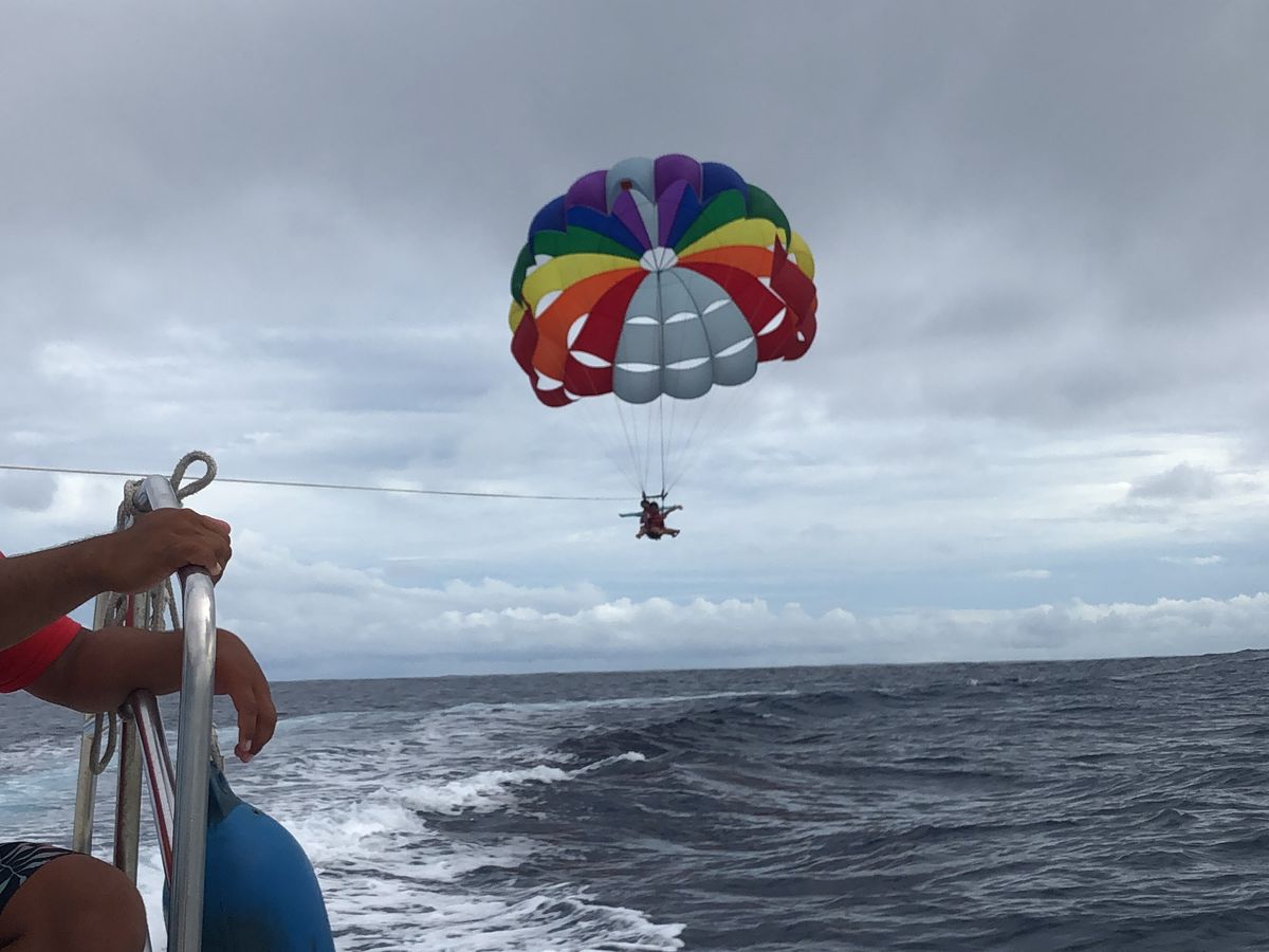 パラセーリングする場所まで船で行くのですが、途中でマンタが居たので引き返してくれてサービス精神旺盛で大満足でした✨