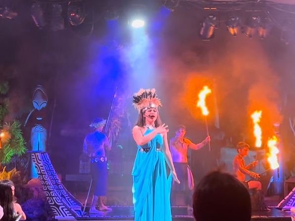 グアムに行かれる方には本当におすすめです!まず、言語に不安がある方でも大丈夫です。ショー自体は英語でセリフがたくさんあるというわけではなく、歌とダンスと映像を楽しむ感じです。また、受付時も名前を聞かれるだけですし、私の時は日本語で対応していただけました。19:15現地集合とありますが、その時間からホール内の扉が開き席に座ることができるようです。19:30受付開始とありますが、19:00頃到着してそのまま受付をしていただけました。今回シルバープランで予約しましたが、目の前までキャストの方が来られるので迫力がすごかったです。ブロンズプランの方が全体を見渡せるのはメリットだと思いますが、迫力を求めるならシルバープランがおすすめです。
