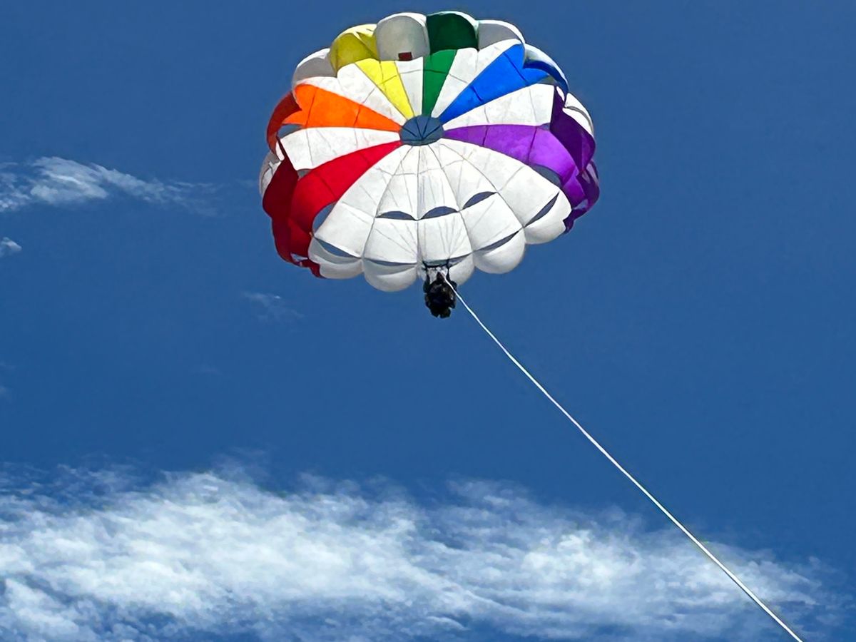 パラセーリングスポットまでボートで移動も楽しいし、パラセーリングも海上で風を感じられる大パノラマなブランコみたいで気持ちよかったです。
