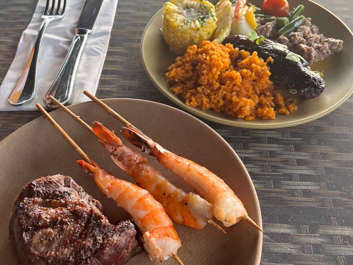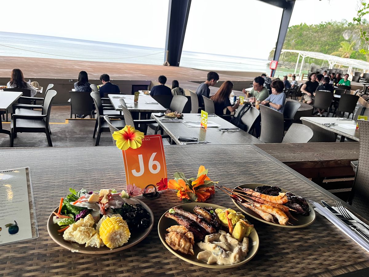 料理は、魚介をその場で焼いてくれたり、刺身があったりと、日本人の口にも合う繊細なもので、大変美味しかったです。また時間制限がなく、ビールやワインがフリードリンクだったので、ゆっくりと楽しめました。(ホットコーヒーなどの温かい飲み物は、なかったです。)何よりも日本人らしき人にも会わず、ワイワイガヤガヤと皆が心から楽しんでいるような雰囲気で、面白い人も多く、「グアムはいいなぁ」と実感しました。