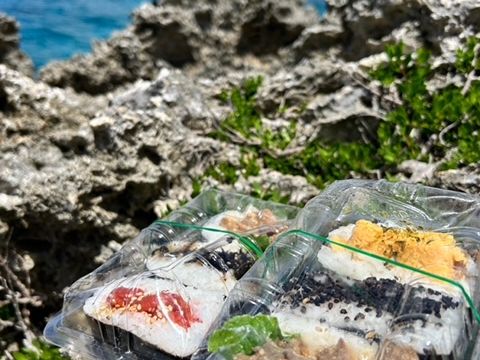 お弁当は骨付きの鶏&豚+チャロモライスで、子供たち(小学生+園児)もパクパク食べていました。