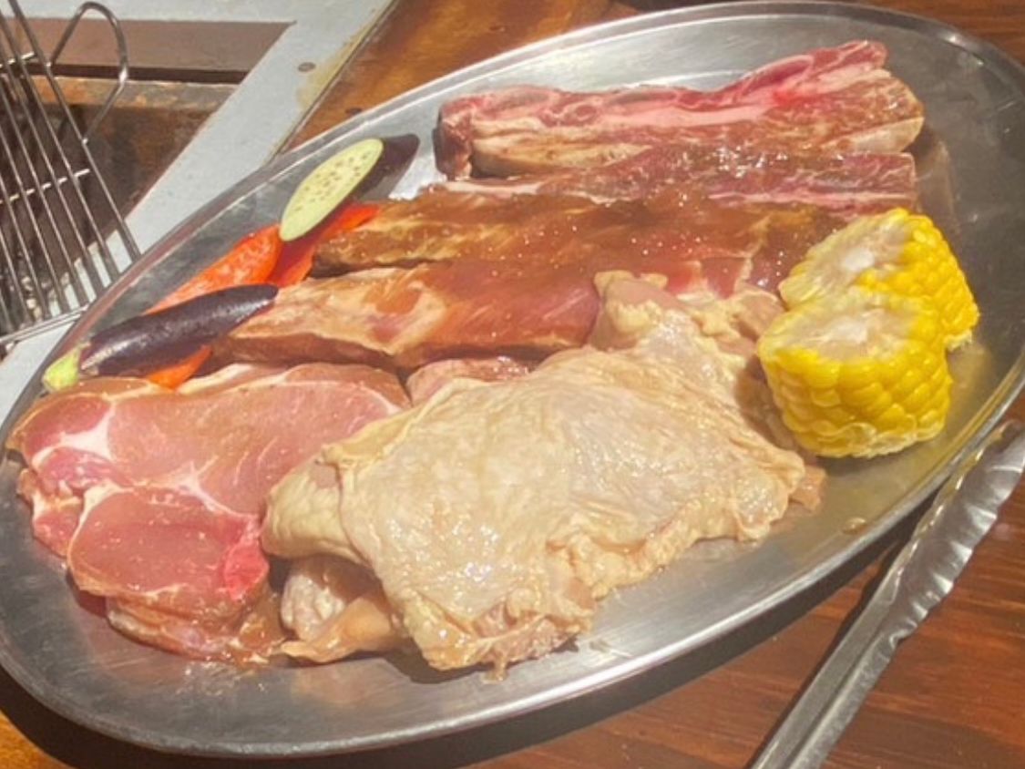 グアム旅行最終日の夜に利用させて頂きました。大きなお肉のかたまりが複数出てきて、それを焼きながら、切りながら食べるスタイルです。当たり前ですが、焼肉のタレがないことを残念に思いましたが、食べてみるとお肉には味がしっかりついていました!しかもそれが最高に美味しい!!カルビバーベキューのコースにしましたが、ボリューム満点で、大満足でした。