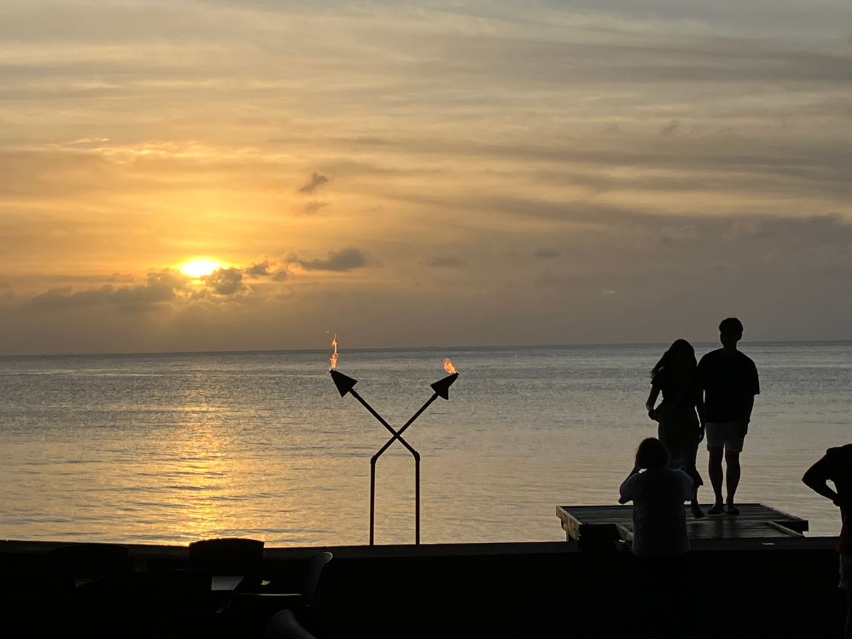 ちょうど座った席が端っこだったので、木と物置?みたいなので、かぶってサンセットが見にくかったけれど、最高でした!