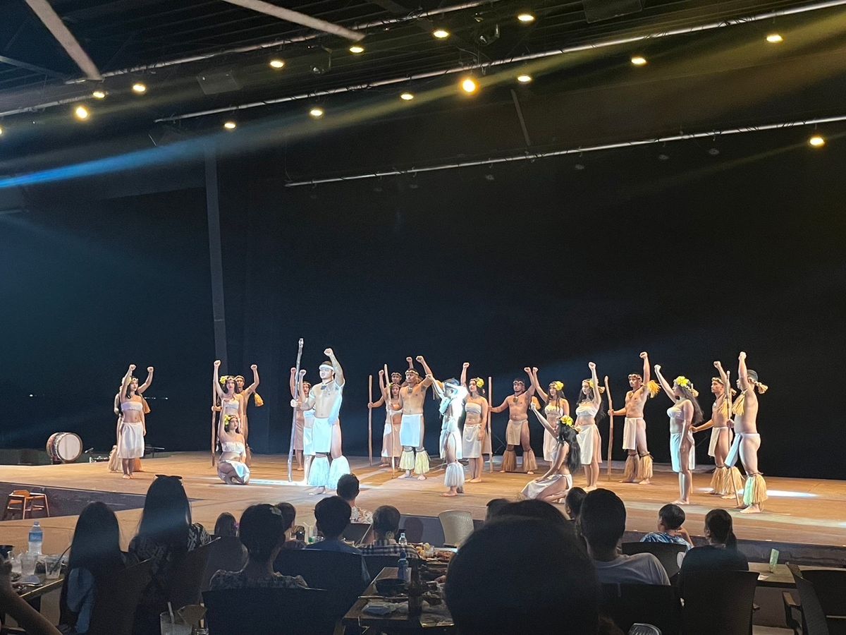 ショーが始まる前にバイキングを食べながらのサンセットがとっても綺麗でした。皆さん前のステージで写真を撮っていました。バイキングも量が多くお腹いっぱいになりました!ショーはとっても迫力があり楽しめました!参加して良かったです!