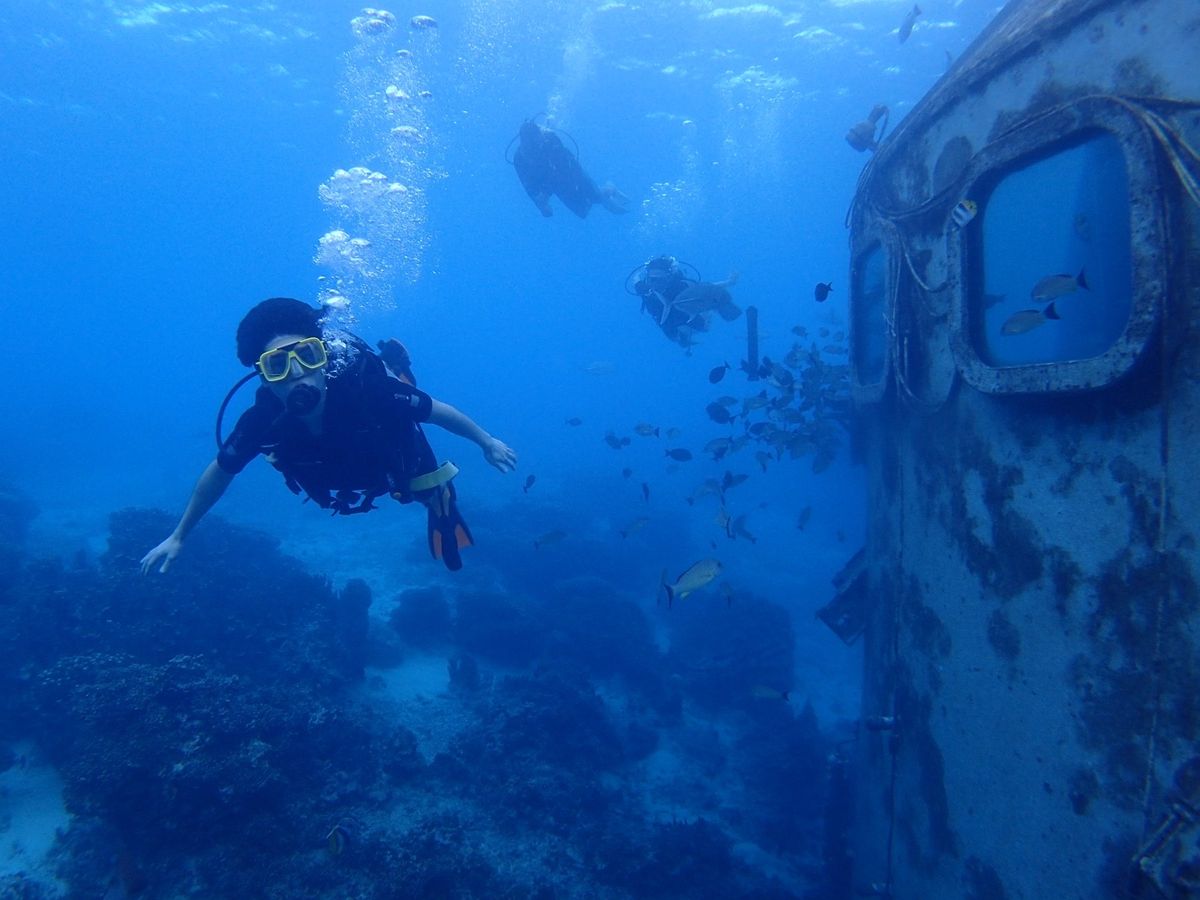アクアアカデミーの体験ダイビングは初級・中級・上級の3段階ございますが、難しいのは水中に馴染む部分で残念ながら背の立つところでダイビングを断念する方もいらっしゃいます。ですから水中に行くことができましたら最も楽しめるのが上級であると思っています。