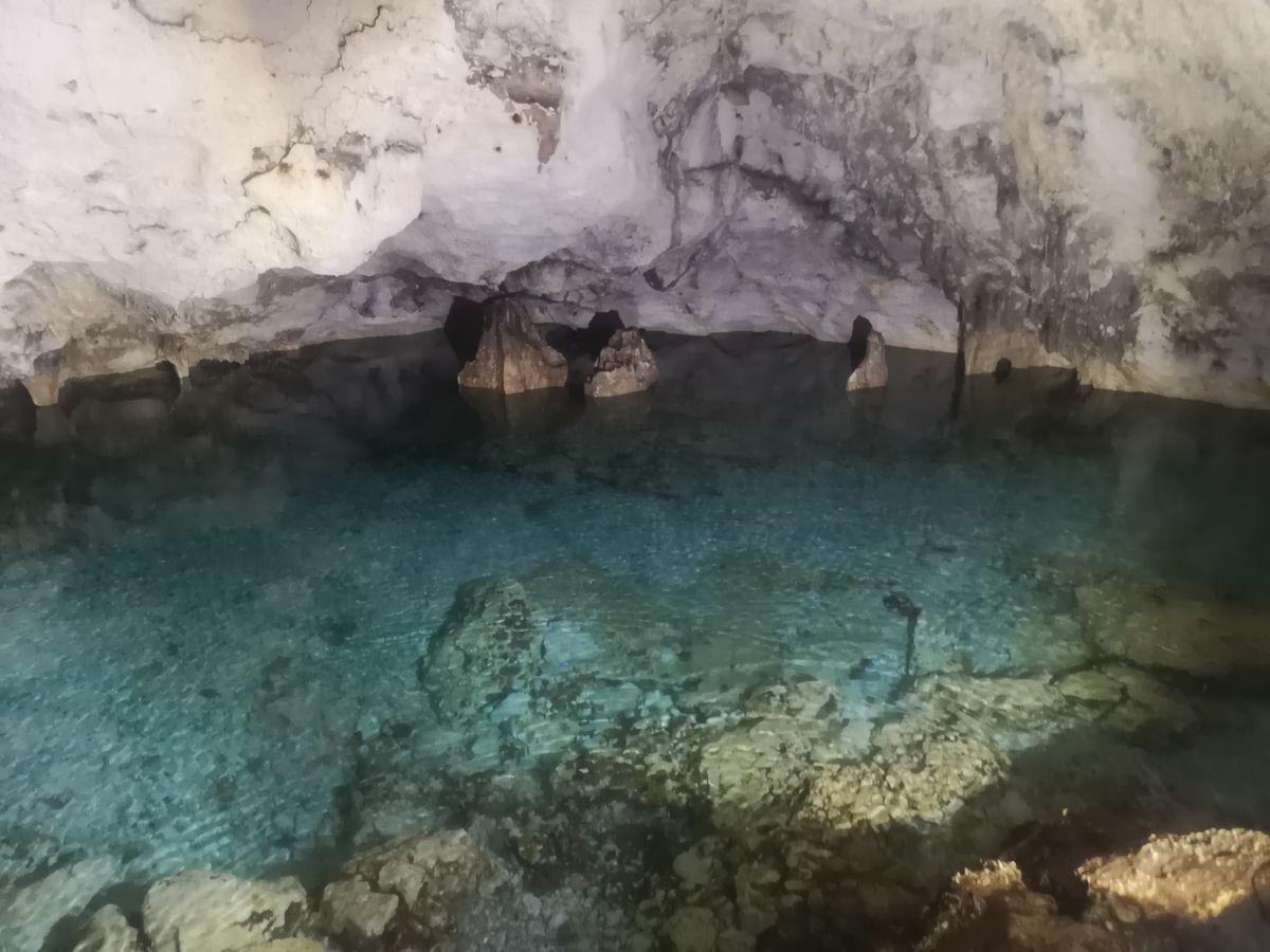 花や草木、虫、動物の世界にお邪魔させていただながら進むと、洞窟の先には美しい真水の泉