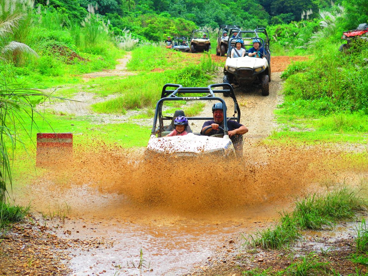 バギーは雨上がりのあとだったので、水たまりがたくさんあり、勢いよく飛び込むと本当に凄い水しぶきで泥んこになるので、汚れてもいい服装が絶対です(靴も)!