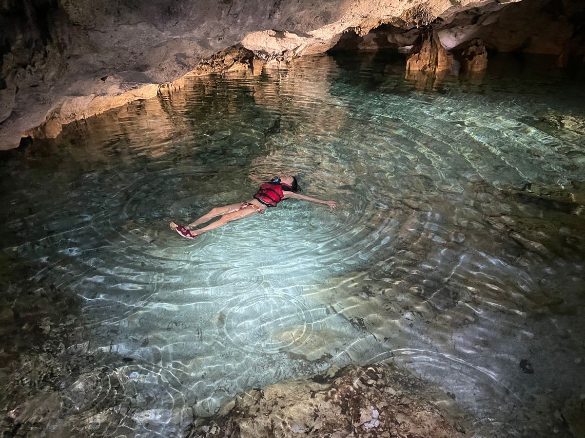 メインは洞窟内の泉での遊泳です。水は透き通っており、トレッキング後の疲れを癒やすこともできて最高でした。全く足がつかないほど深いところもありますが、ライフジャケットがあるので安心です。
