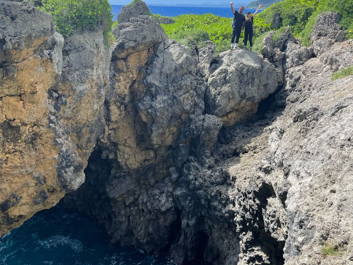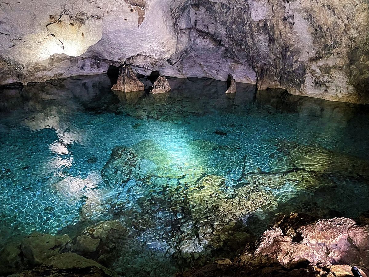 一生懸命歩いてようやく到着して洞窟では、何とも言えない透き通ったブルーの淡水に浸かりながら、間近で鍾乳石がみれて、他では出来ない神秘的な体験でした。