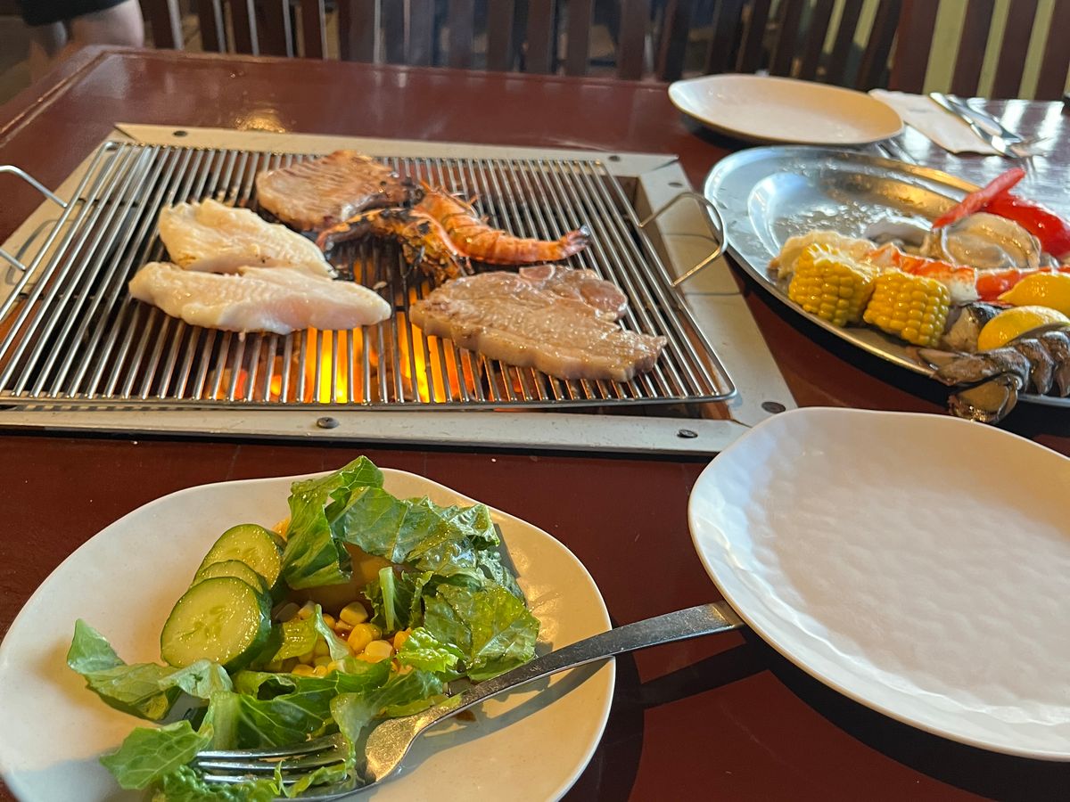 口コミを見て期待していきましたが、とにかく魚介がしょっぱく、磯臭かったです。この金額を払って行く意味は私たちにはあまり感じられませんでした。サラダと味噌汁、白米があるのはよかったです。飲み放題についてはビールは普通の缶ビールでいいのですが、その他の飲み物はぬるいし味が薄かったです。ホテルのラウンジや、グーグルで評価の高い店に行く方が良かったなと感じてしまいました。海辺に近い席であれば景色はいいです。