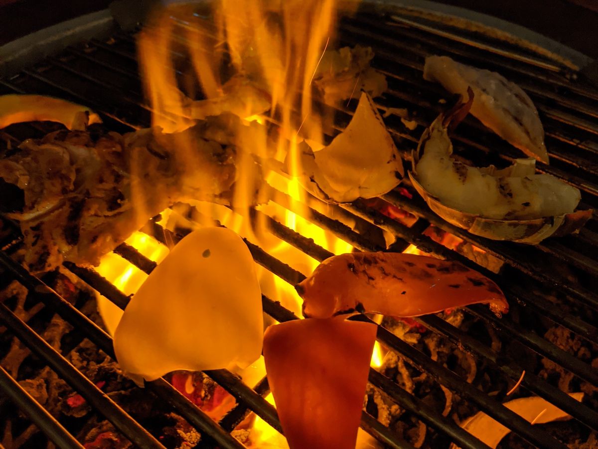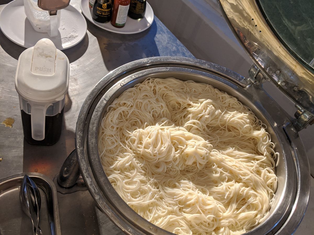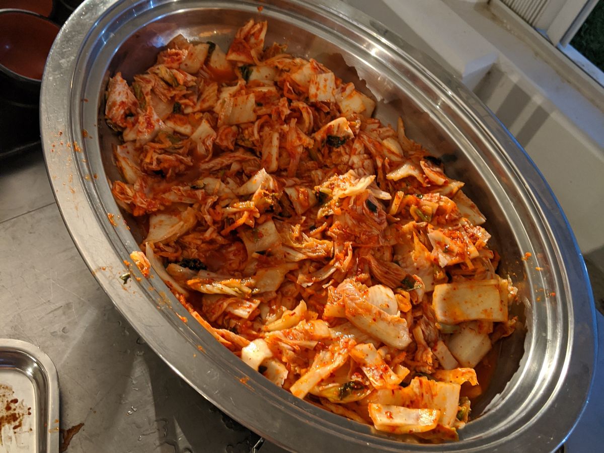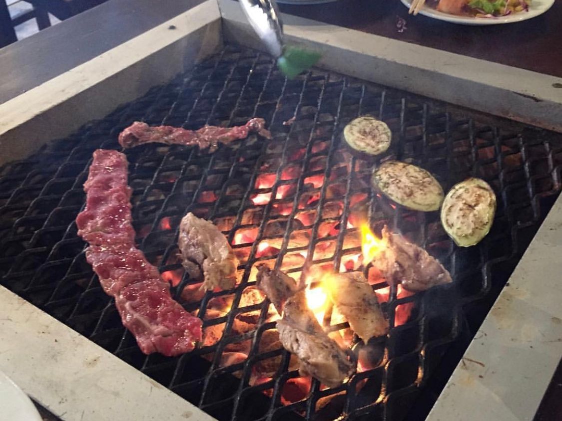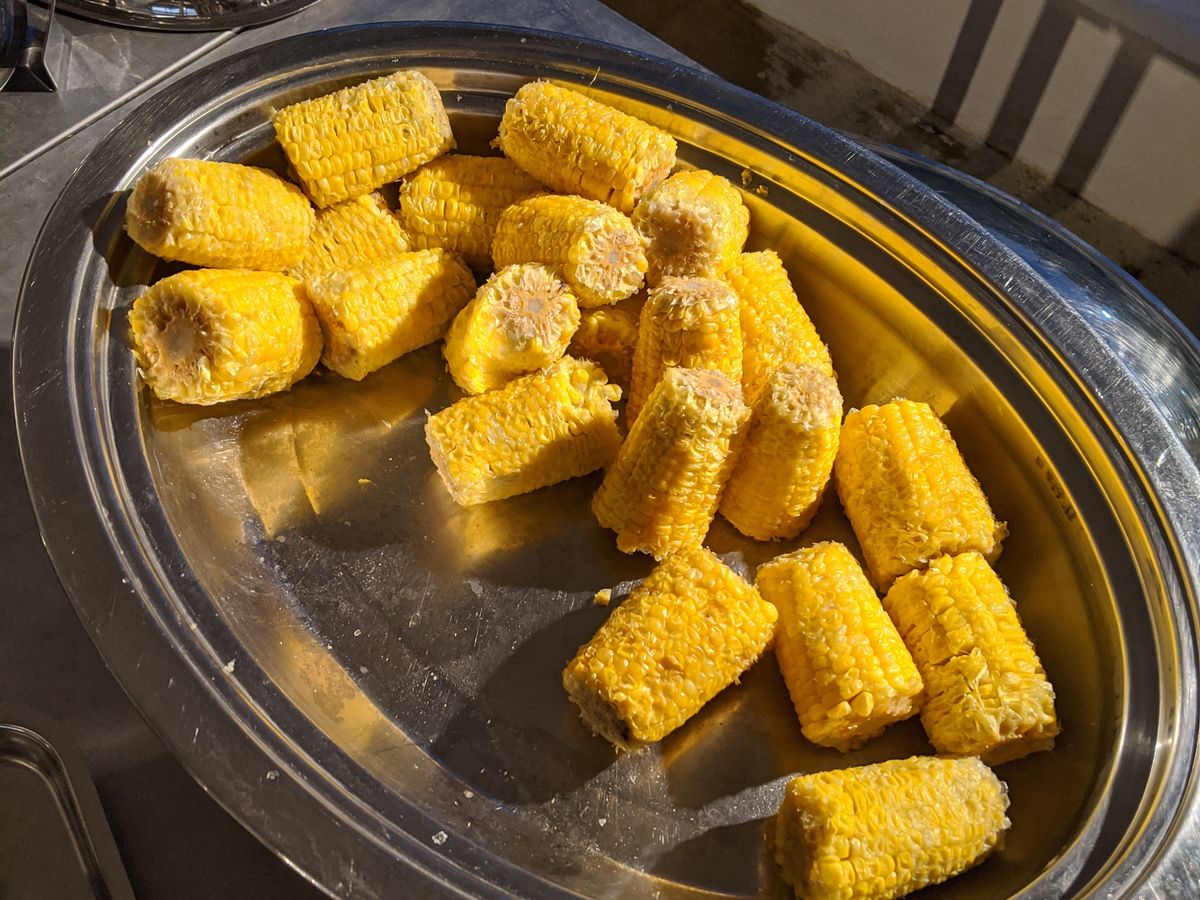 食事は、骨付きカルビやロブスター、野菜などが最初に準備されており、サラダやフルーツ、白米などはブッフェ形式で別途取りに行く形式です。ブッフェにはジャガバターやキムチ、素麺などもありましたが、席に準備されていた食事で充分お腹いっぱいになる量でした。