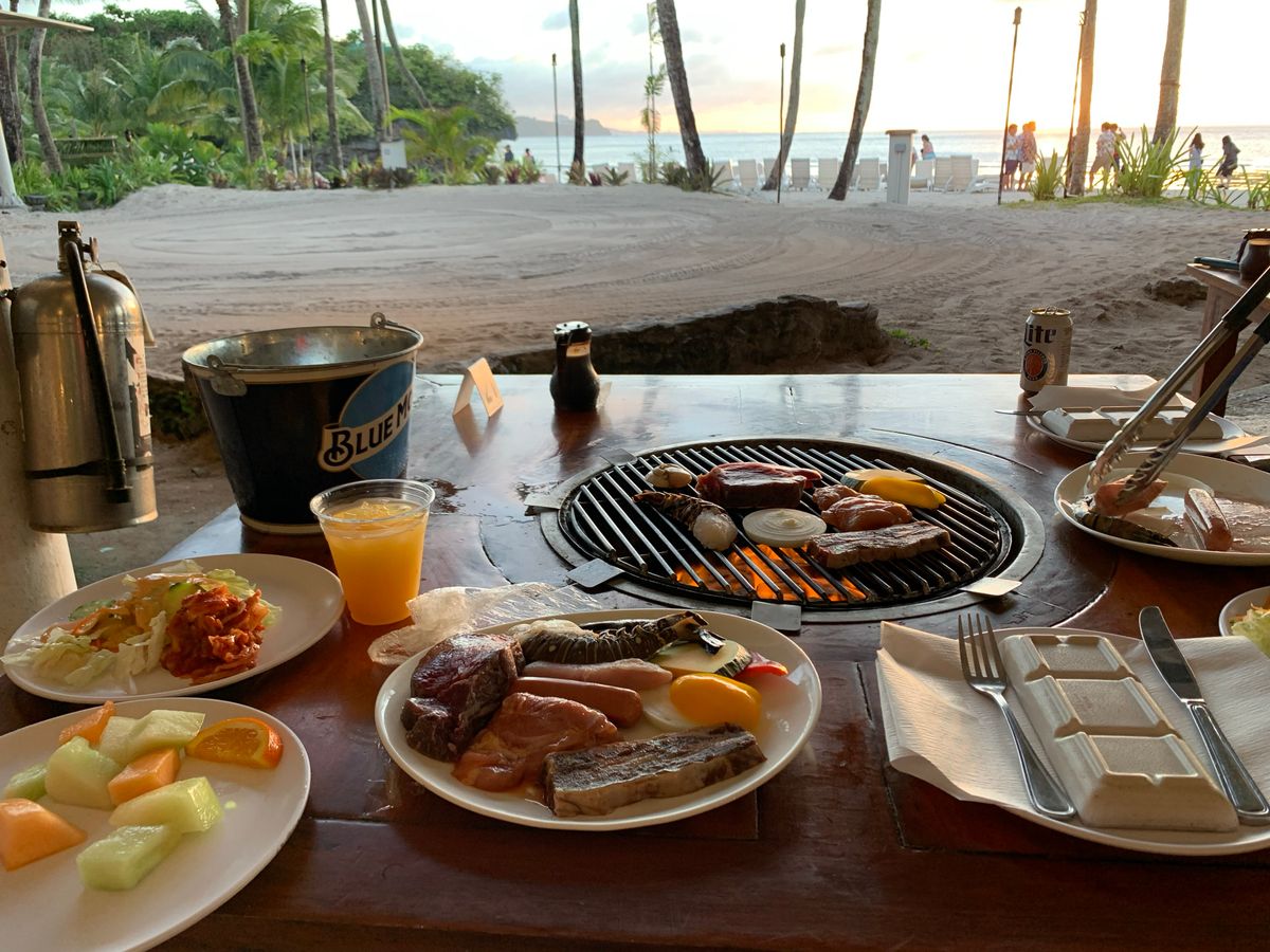 最初の一時間は、サンセットを眺めながらバーベキューをひたすら食べる!