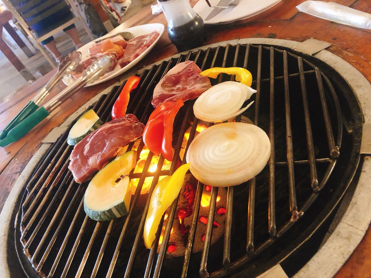 私たちは牛フィレとロブスターテイル付きのメニューを申し込みましたが、何ともダイナミックな厚切り肉なので火が通るまでに結構時間がかかります。ここはどんどん惜しまず焼いていく事をお勧めします!このコースは女性としては大食いの私でもお腹がはち切れる程の量でした(笑)