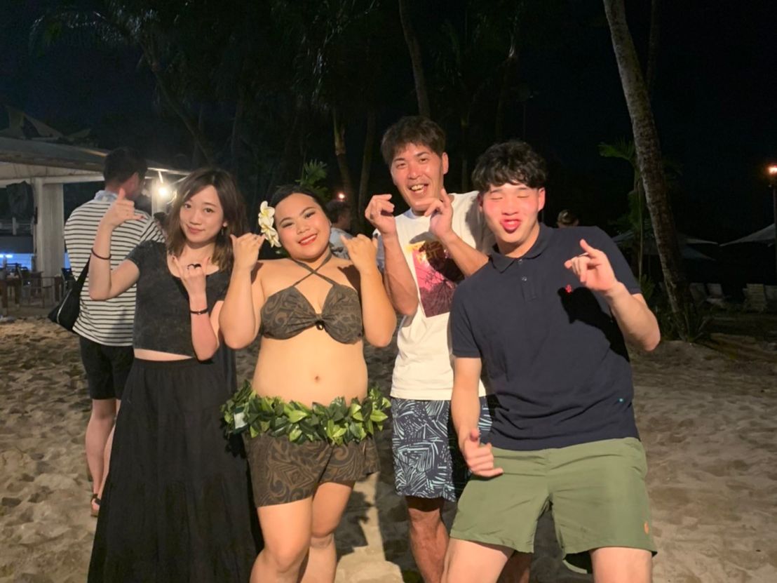 会場では、日本語を話せるスタッフが働いている。とても気が利いて、いい人たちだった。海も近く天気が良ければ夕日も見られる。バーベキューをしながら現地のダンスを鑑賞できとても雰囲気が良かった。肉やお酒は食べ飲み放題で、シーフードは大きいエビなどがついていた。また、野菜や惣菜の準備もあった。会場の雰囲気やスタッフに大満足。
