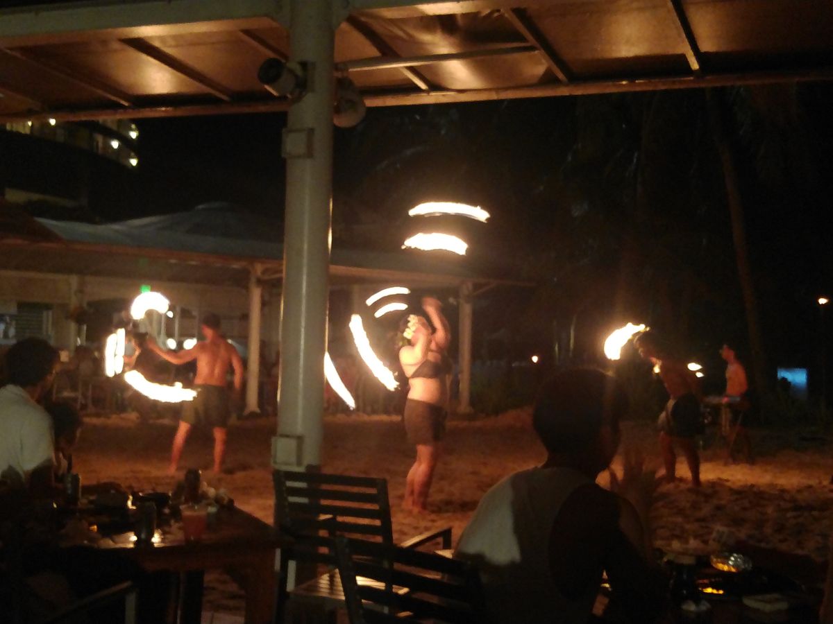 サンセット付きの普通のダンスショーと思ってましたが、時間のバランスがちょうど良かった。BBQしながらサンセット。かと思いきや面白いMCでファイヤーダンス。参加型ダンスも有りとても面白かったです。