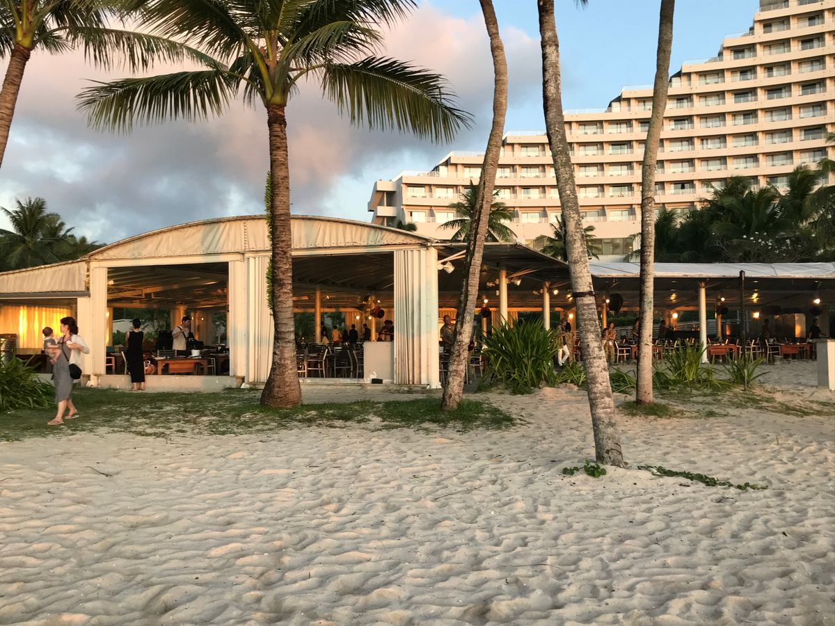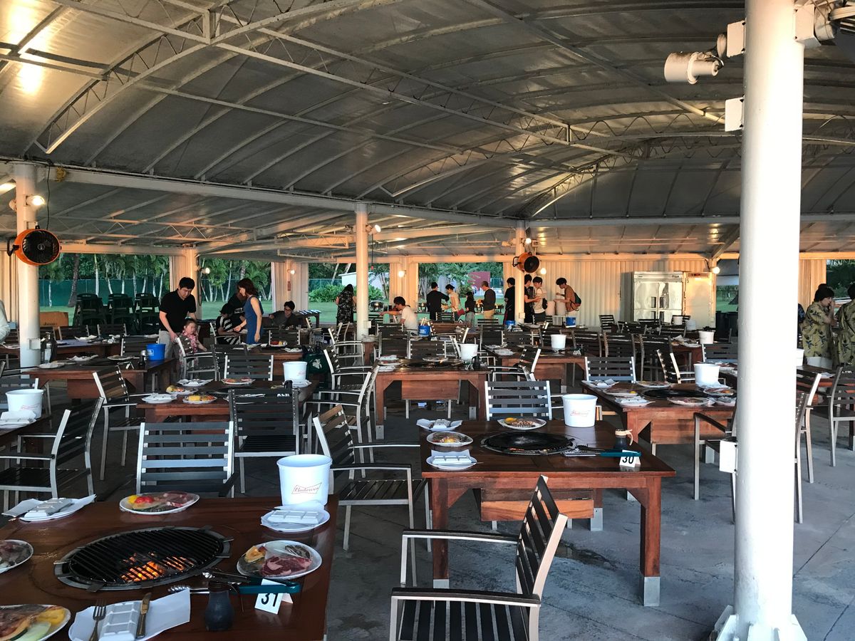 ホテル日航内、浜辺近くにあるBBQ会場。