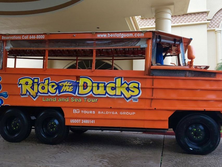 車内の日本語案内でグアムの歴史を聞き、島内をガイドしてもらい、もらったダックの笛で盛り上がり♪