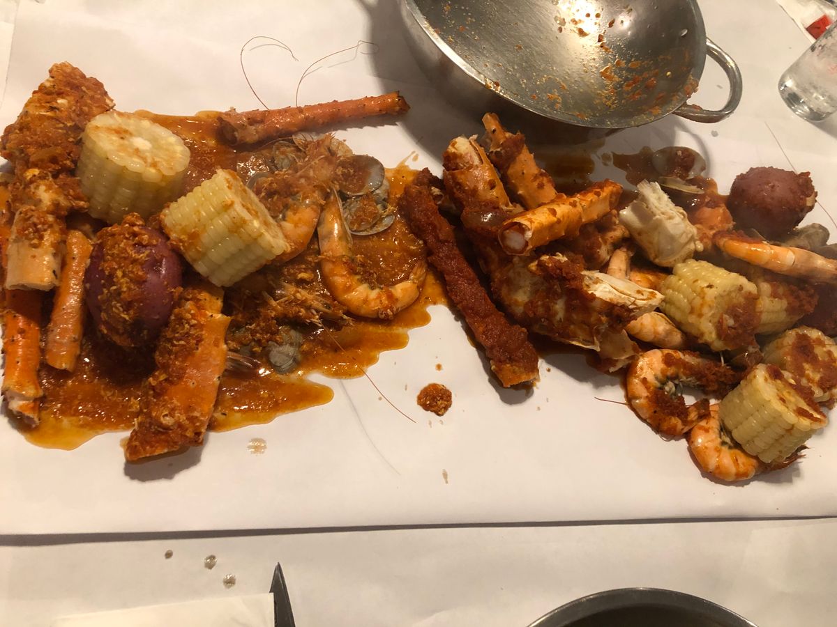 大人3人子供1人で行きました。量的にシーフードよりとうもろこしとじゃがいもがメインな感じでした。味はノーマルとスパイスで分かれていてスパイスでもそんな辛くなかったです。味は美味しかったです。