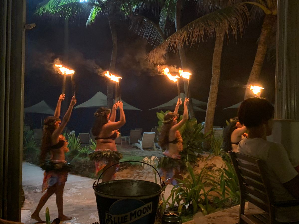 食事も普通に美味しかったですが、ショーが最高でした!目の前がすぐに海なので、ショーが始まる前にとてもきれいに夕日が見えました。どの席からも、ショーが見えるようになっており、近くまで来てくれるのでとても迫力があり、45分のショーはあっという間でした。少し時間がおしていたのか、最後の観客が参加できるところまで居られず送迎バスの時間になってしまったのが少し残念でした。またグアムに行くことがあればぜひまた参加したいです。
