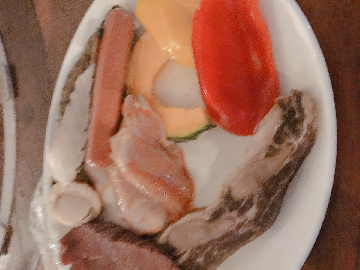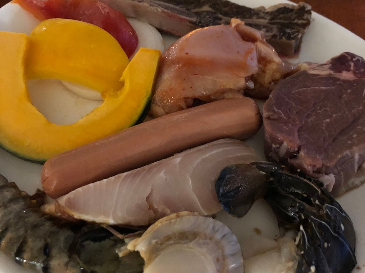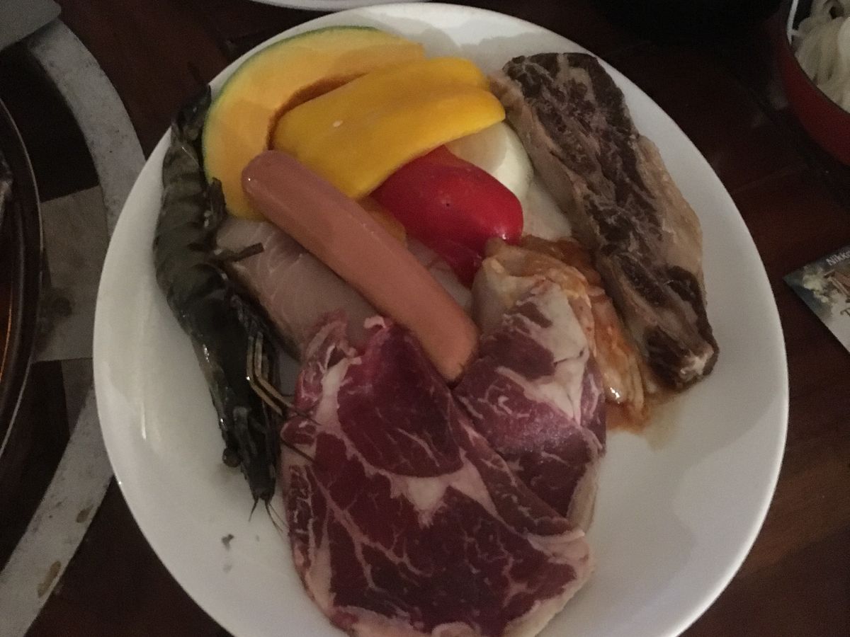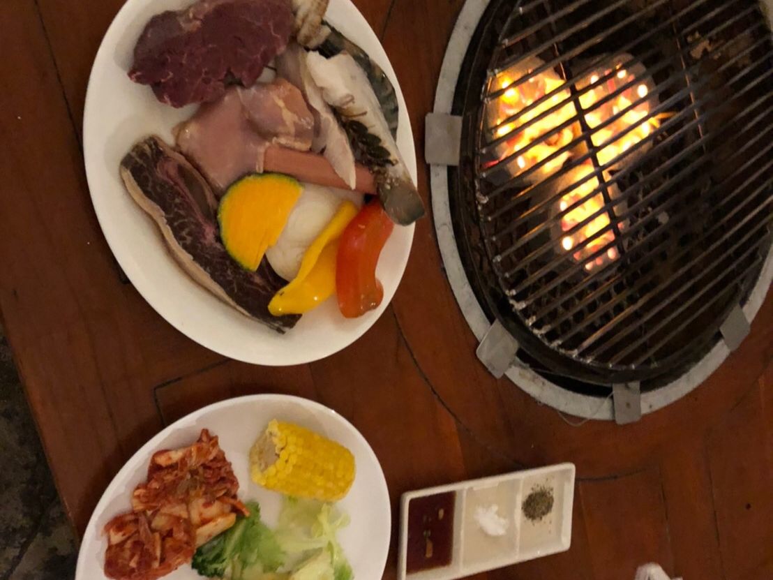 飲み放題月のプランでした。BQQの具材も牛、鳥、エビ、魚、野菜が少しずつセットされており、トウモロコシとじゃがバターはビュッフェにありましたので、食べ放題でした。量的には少し多いかなと思いました。