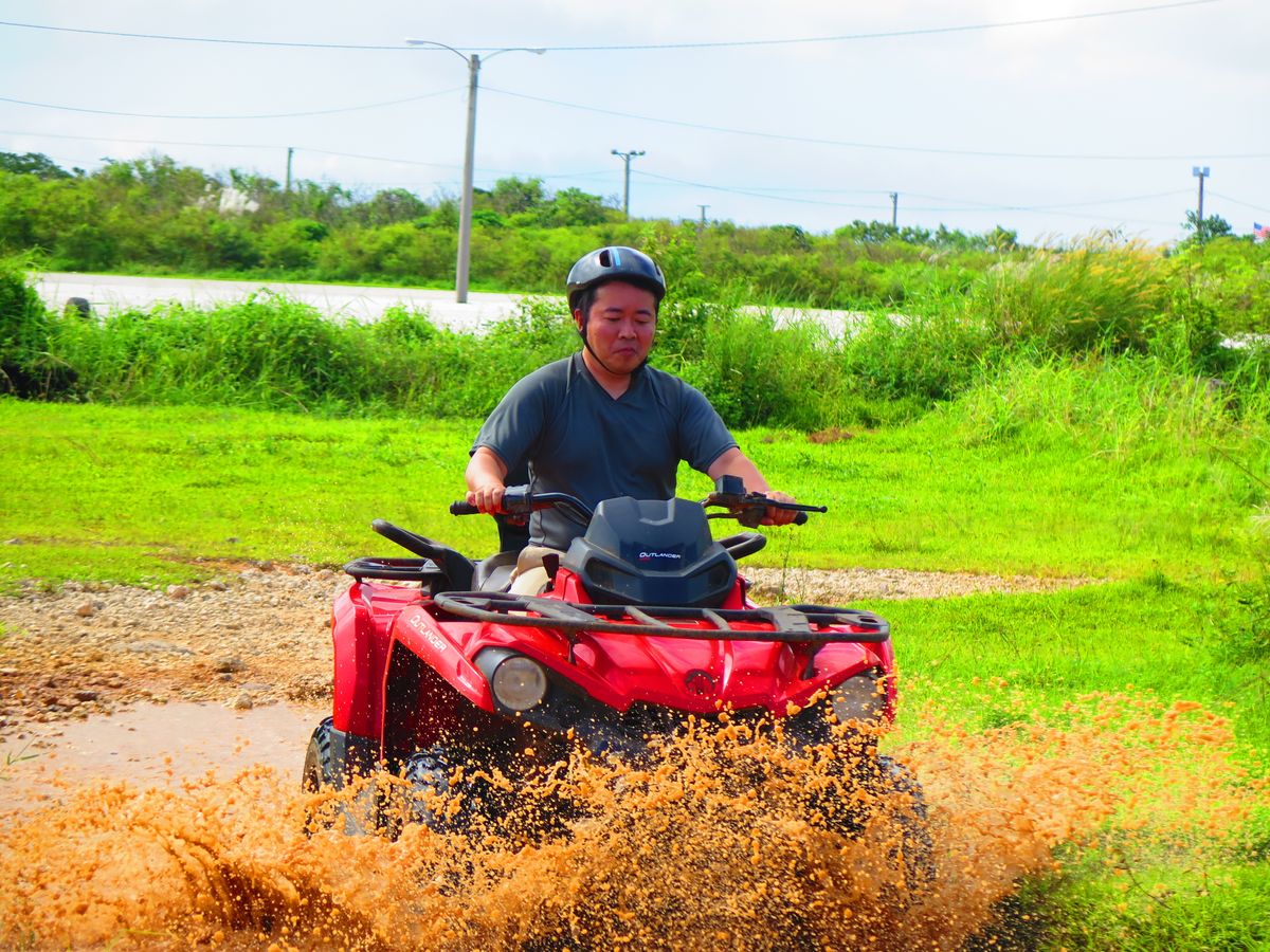 走行ロードは砂利道やアップダウンの激しい坂、水溜りと結構険しい道でしたが、これこそオフロード走行の醍醐味を味わえるツアーでした。あとATVはステップに穴が開いていて、靴やズボンの裾が結構汚れますので、汚れてもいいような服装で参加した方が良いと思います。