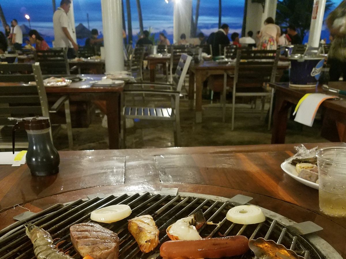 初グアムの初日にサプライズメニューで参加しました。台風が発生していた関係でサンセットは見れませんでした。料理はかなりボリュームがありますが、肝心の火が弱くてなかなか焼けず、少しストレスに感じました。スタッフがかなりフレンドリーな接客なので、苦手な方はイラッとするかもしれません(笑)私は日本の接客に慣れているので、かなり度肝を抜かれました。ファイヤーダンスは見応えがあり良かったです。値段が高いだけに少し残念でした。