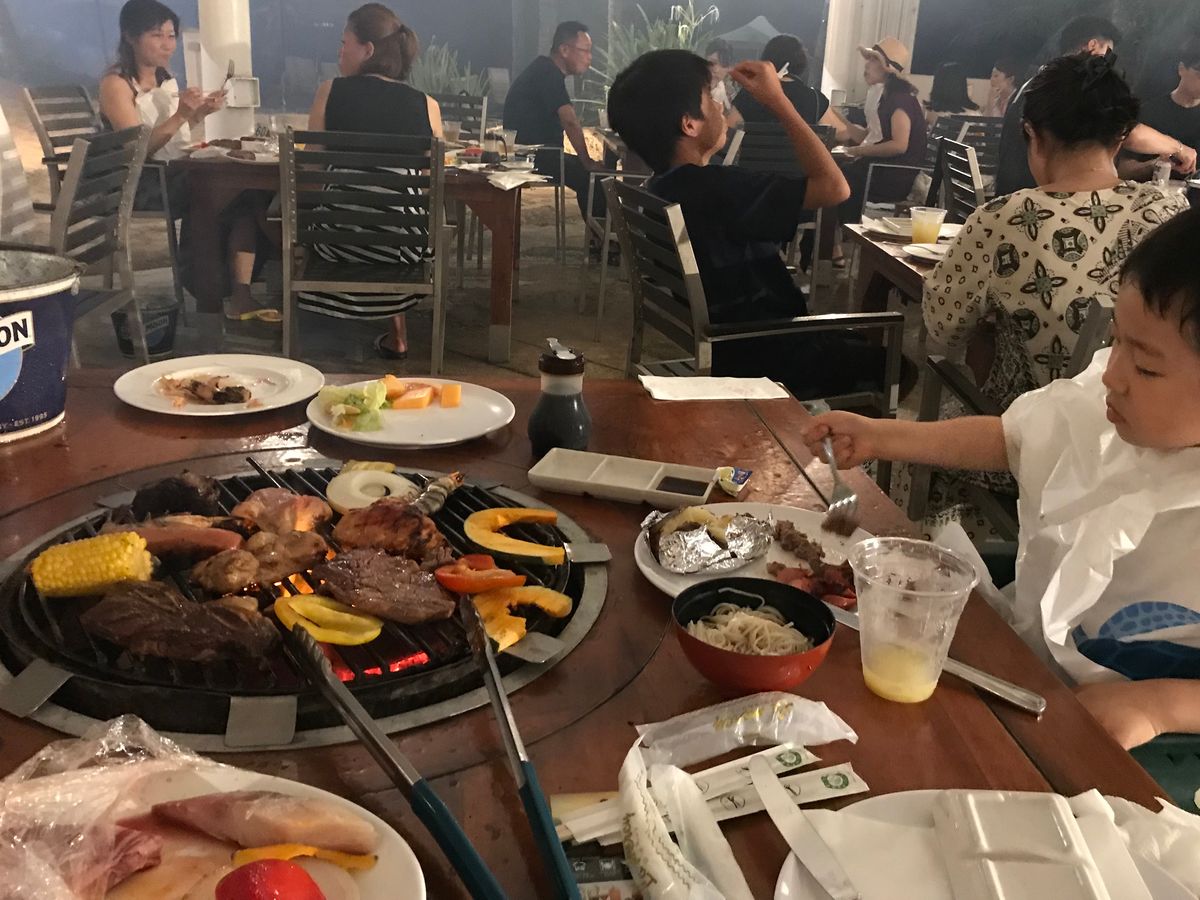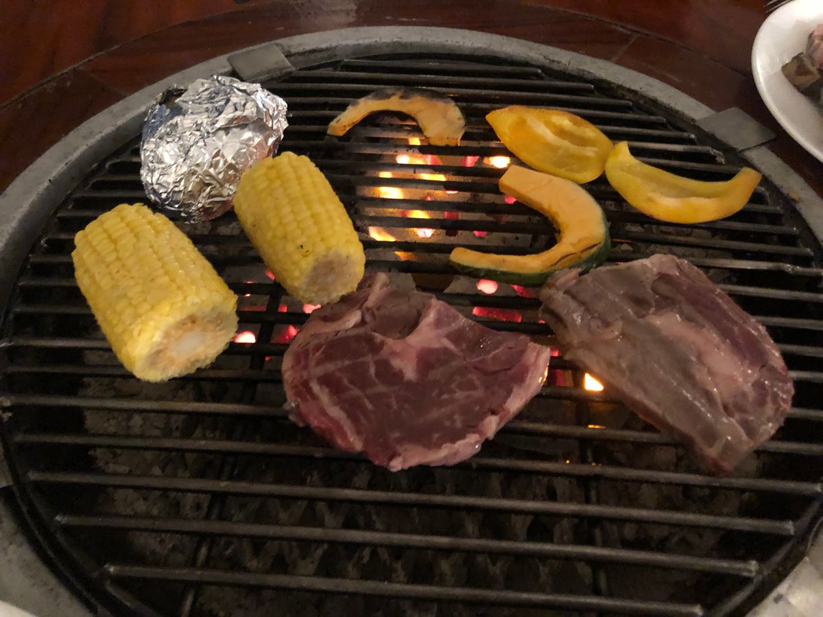 バーベキューの炭が消えかかるとお兄さんが足してくれます。スタッフの動きも良く感じは良かったです。